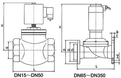 本閥DNl5—50系一次開閥的直動(dòng)式低壓電磁閥,DN65—300系二次開閥的先導(dǎo)式電磁閥。直動(dòng)式電磁閥在接受電信號(hào)后,電磁力直接將閥塞提起,介質(zhì)流通;斷電后,電磁力消失,閥塞在自重和彈簧力作下下落,介質(zhì)斷流。