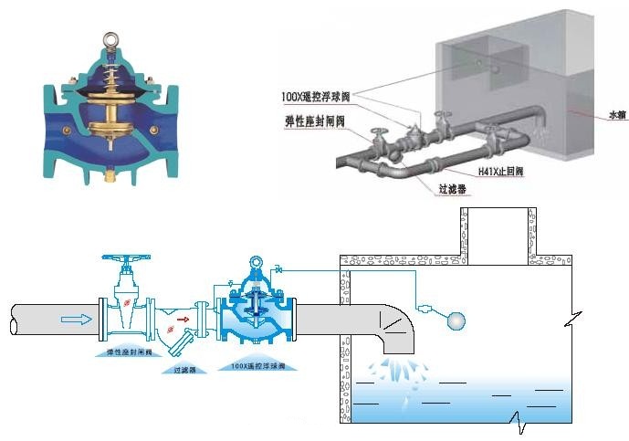 當水塔(池)的水面上升到設定高度時,浮球浮起關閉浮球閥,控制室內水壓升高,推動主閥關閉,供水停止。當水面下降時,浮球閥重新開啟,控制室水壓下降,主閥再次開啟繼續供水,保持液面的設定高度。