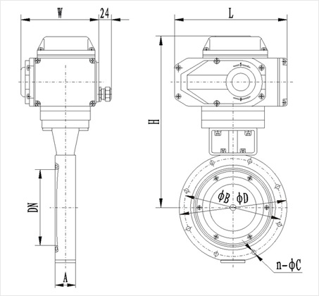 型號(hào) | 通徑(DN) | ΦD | ΦB | H | A | L | W | n-ΦC |