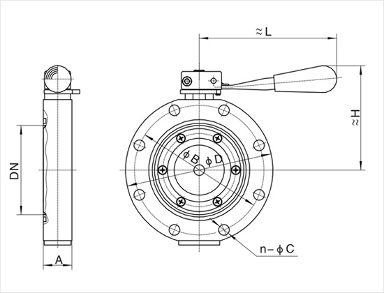 型號(hào) | 通徑(DN) | ΦD | ΦB | H | A | L | n-ΦC |