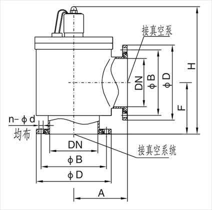 DYC-JQ型系列電磁真空壓差式充氣閥,是安裝在機械真空泵上的專用閥門。安裝于機械真空泵的進氣口,并于泵同步開啟和關閉。當泵停止工作或電源突然中斷時,閥門能依靠大氣與真空的壓差力使閥板自動關閉,將真空系統封閉,保持其真空度,并將大氣通過閥的節流孔充入泵腔內,從而避免泵油逆流污染真空系統。