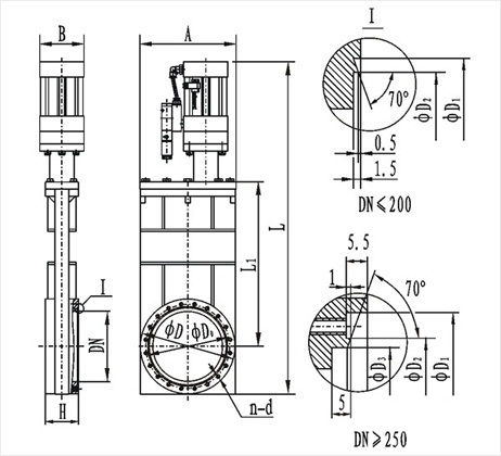 型號 | 通徑(DN) | ΦD | ΦD0 | ΦD1 | ΦD2 | ΦD3 | H | A | n-d | L | L1 | B | 法蘭標準 |
